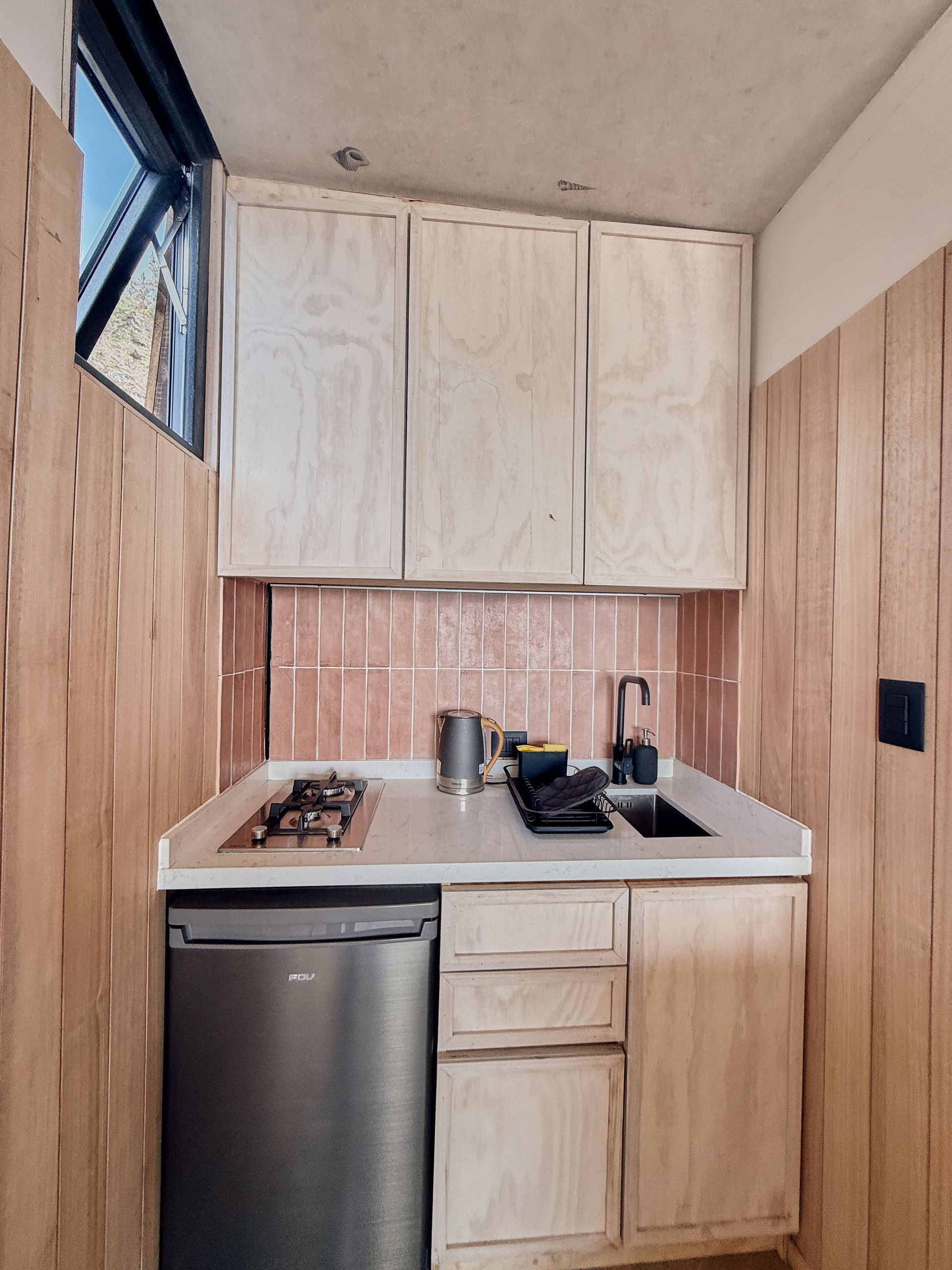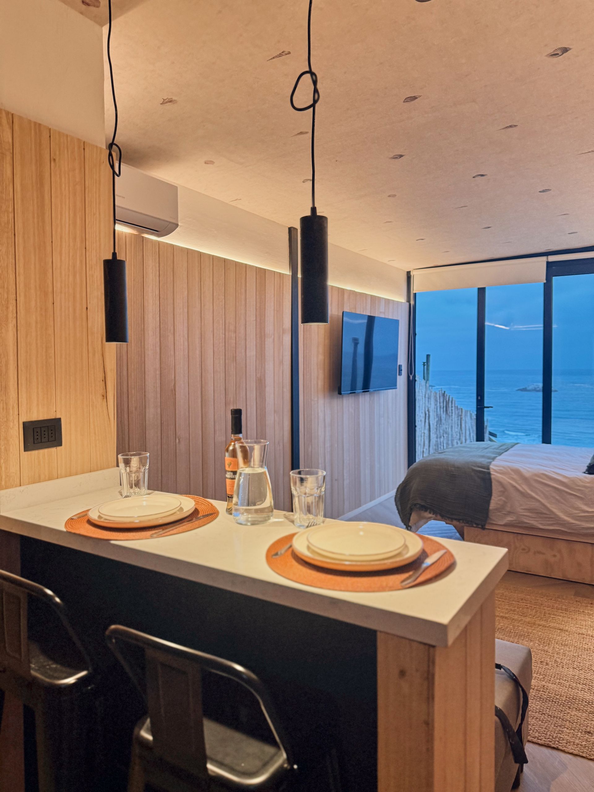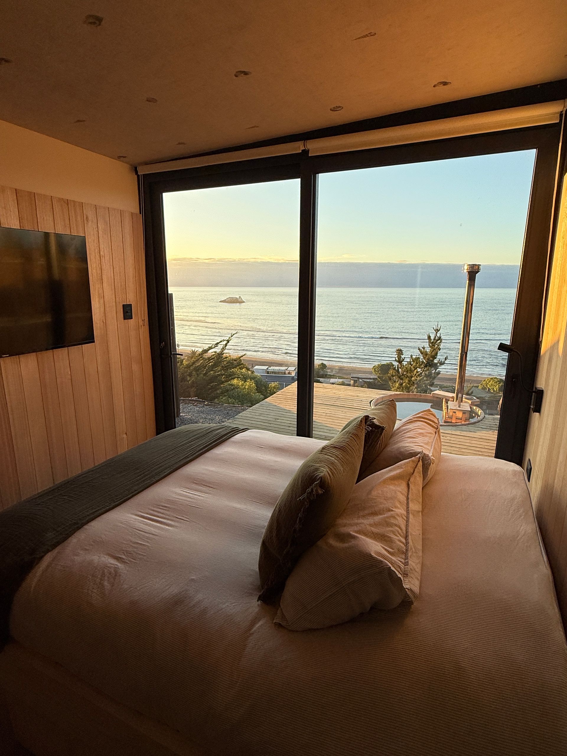 - Disfruta de una hermosa vista al mar desde cada rincón de esta cómoda Tiny y del relajo de tu propia tinaja privada y de uso libre.